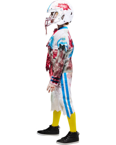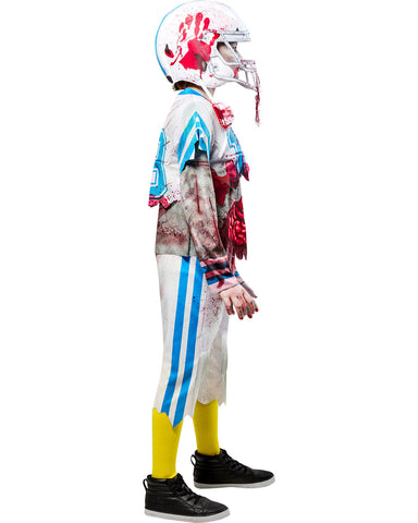 - Includes shredded football jersey over-shirt, zombie guts undershirt, football player pants, and bloodstained football helmet headpiece