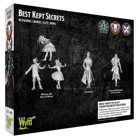 Faction: Explorer's Society, The Guild, Neverborn Keyword: Cadmus, Elite, Mimic Contents: 3 Nexus, One of Many 1 Lucius, Dishonorable 1 Cavatica