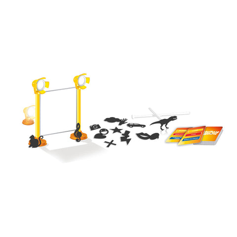 Welcome to the shadows theater. Use the magnetized shapes at the tip of your sticks and have your teammates guess the right word or expression, or drawn reference. Use the shapes to create shadows and form images that are projected onto a translucent screen using light.