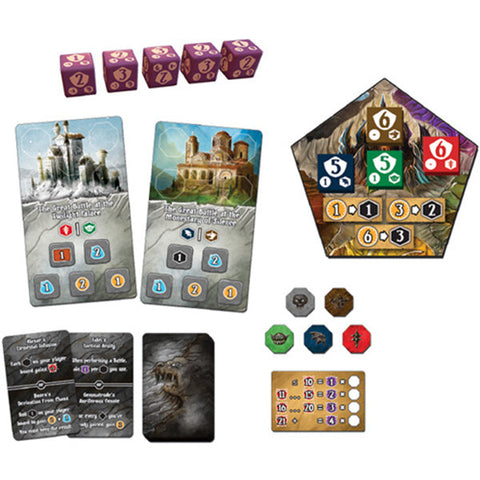 Shadow Kingdoms of Valeria: Rise of Titans adds 4 exciting modules to add to the base game. Add 1, all, or mix and match your favorites. The modules give you access to Great Battles where all players share in the victory, Wraith dice, epic Ancient Spell cards, and the Shrine of the Titans. Finally, after all of these years of bloody clashes and sacrifice, you will have the upper hand in vanquishing the oppressors of Valeria!