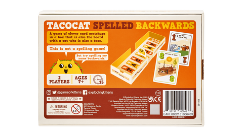 Tacocat Spelled Backwards is a fun balance of strategy, luck, and instinct! With its portable open-and-play design, it’s a perfect two-player anytime, anywhere game; the box is the board!