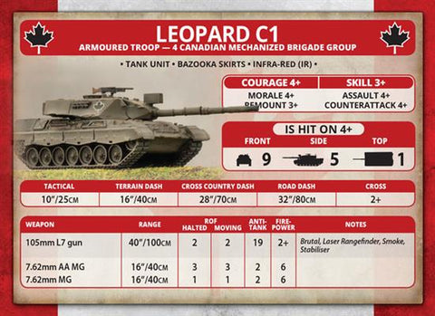 Contains 5 Leopard 1 tanks, crew sprue, units cards and decal sheet