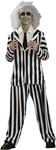 Channel your innermost mischief and mayhem with our teen Beetlejuice costume. You can confidently transform into the mischievous and otherworldly Beetlejuice for Halloween or costume parties. Look super sharp in this classic black and white striped outfit at any spooky event. Unfold your love for the infamous prankster and have a blast!