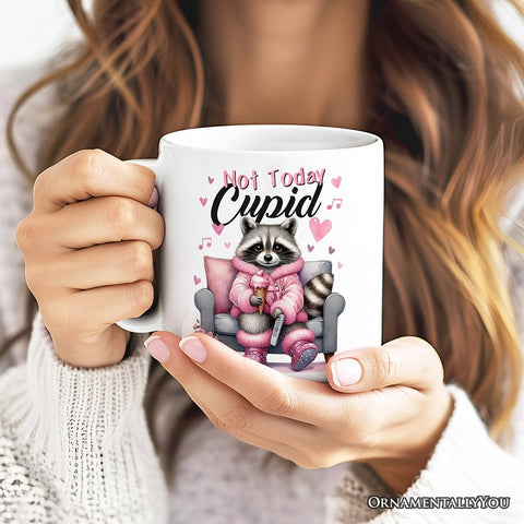 Valentines Snarky Racoon Personalized Mug, Not Today Cupid, Sarcastic Funny Racoon Lover Gift With Custom Name